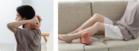 座った姿勢でも首やふくらはぎのケアにも使えます。椅子に座ったまま手軽に使えるため、仕事中のリフレッシュや、おうちでのくつろぎ時間にもおすすめです。