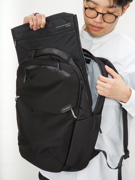 普段の通勤はもちろん、ちょっとした出張や外出にも対応できそうなサイズ感。単に通勤用バッグとしてではなく、全部入りの外出用バックパックとして使える点が強みです。