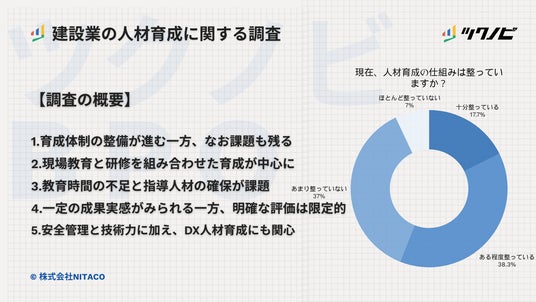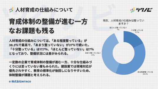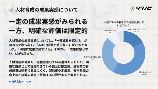 株式会社NITACO(本店:東京都渋谷区、代表取締役:新田 顕大)は、建設業従事者300名を対象に、「人材育成に関する調査」を実施しました。