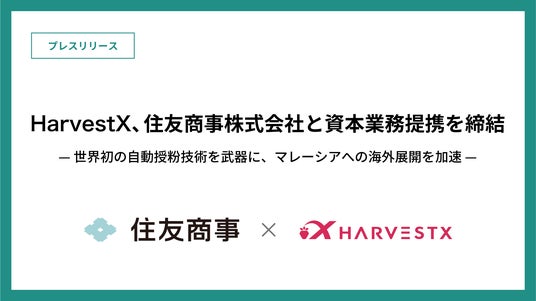 HarvestX、住友商事株式会社と資本業務提携を締結