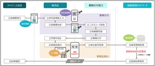 また、本プラットフォームの構築に伴い、自動車販売店担当者向けの専用Webサイトを開設し、申請後の車検証提出をオンラインで完結できるようになりました。これにより、書類交付からファイナンス会社への登録結果報告までに要していた時間を、2~3週間から最短3営業日へと大幅に短縮します。