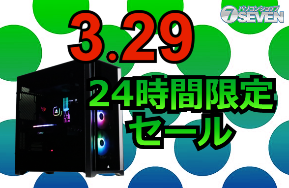 セブンアールジャパンは、3月29日に「2026/3/29 24時間限定セール」を開催する。期間中、最新のゲーミングPCやデスクトップPCが最大80,000円オフで購入できる。このセールは3月29日0:00から23:59までの一日限定で行われる。