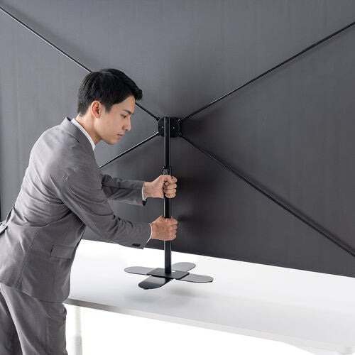 支柱に台座を差し込むだけのシンプルな構造により、工具を使わず短時間で組み立てが可能です。約3分で設置できるため、急な会議やプレゼン準備でもスムーズに対応できます。初めての方でも迷わず扱える設計で、誰でもすぐに大画面環境を構築できます。