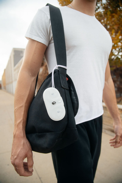 耳に接する部分は丸みを帯びた独自の形状で、装着すると耳穴の上のほうに触れる(下が少し空く)形になる。楕円形の筐体はフィット感を維持しながら、外部の音をしっかり聴けるこだわった形状の本体だ。また、ケースにはハンドストラップになるケーブルが付属しており、かばんやズボンにぶら下げることが可能。さらに、これを取り外して磁石でイヤホン本体に取り付けるとネックバンドになるのが面白い。取り付けが簡単で、激しく動いても左右がバラバラにならないのがメリットだ。