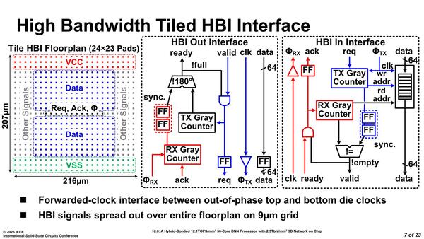 信号がSingle Endedではなくディファレンシャルなのはやや意外だった。この変換をするのが、HBI Out Interface右下のFF:FlipFlopと、HBI In Interface右上のBufferと思われる。