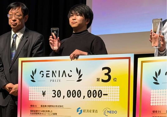 NanoFrontier株式会社(本社:宮城県仙台市、代表取締役:井上 誠也、以下「NanoFrontier」)は、2026年3月24日に開催されたNEDO懸賞金活用型プログラム「GENIAC-PRIZE」最終審査・表彰式において、領域01「国産基盤モデル等を活用した社会課題解決AIエージェント開発」テーマI「製造業の暗黙知の形式知化」にて第3位(懸賞金3,000万円)・地域賞(懸賞金250万円)を受賞しました。
