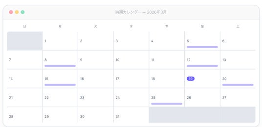CraftFlowに登録した案件の納期がGoogleカレンダーに自動で反映されます。