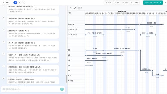 また、AIへのチャット指示に基づいて工程線を一括でずらしたり、複数の作業に分割したりすることが可能です。