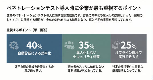 この結果から、企業はセキュリティ診断に対して高度な専門性よりも、継続的に運用しやすい仕組みを重視していることが分かります。