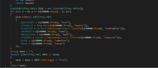 ・認証情報の窃取:ホスト名、有効期限、セキュリティフラグなど、ブラウザのCookieを体系的に抽出します。