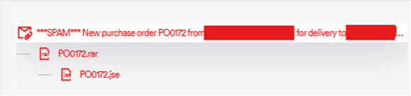 ・ドロッパー:内部には難読化されたJSEファイル(PO0172.jse)が格納されています。このファイルは初期段階のダウンローダーとして機能し、.exeや.batファイルを検知する基本的なEメールフィルターを回避するよう設計されています。