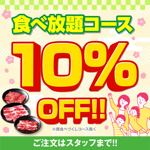 さらに、食べ放題コースも期間限定で、通常価格から10%引きで提供します。