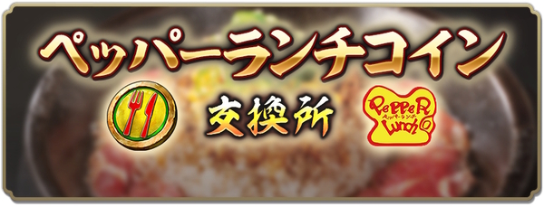 パネルミッションの達成や、ペッパーランチ店舗への訪問、フィールド上の民タップや合戦での勝利などでペッパーランチコインを集めることができる。集めたペッパーランチコインは、交換所でコラボ記念のアイテムと交換できる。