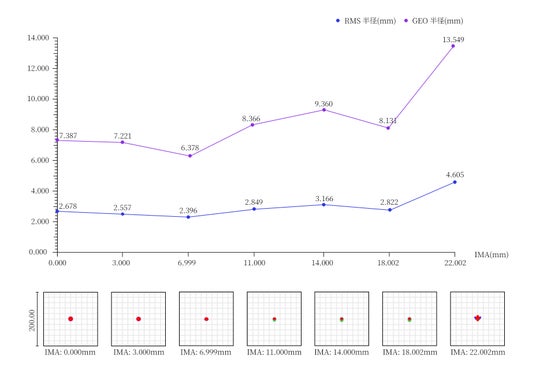 - レデューサー使用時はF3.9の明るさとなり、大きい対象や淡い対象の撮影に適します。スポット半径は中心で約2.7μm、フルサイズ最周辺で約4.6μmです。