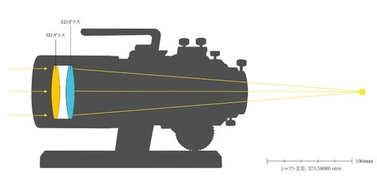 SDガラス+EDガラス採用の3枚玉アポクロマート光学系