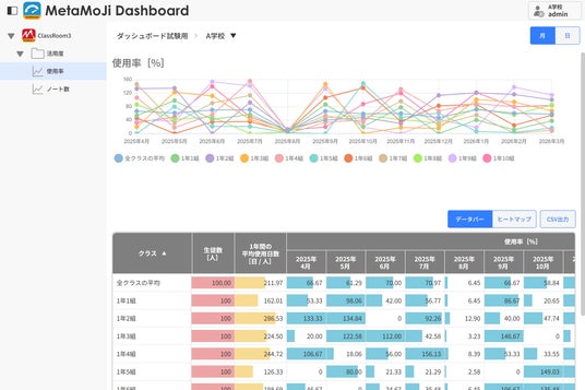 学習履歴を様々な項目で集計し、MetaMoJi ClassRoom 3の活用度を可視化します。