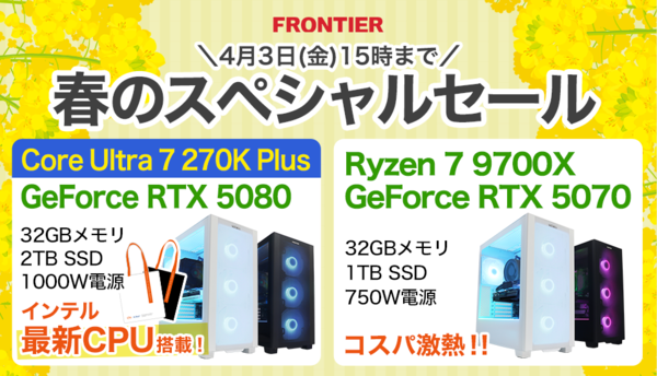 FRONTIER春のスペシャルセール開催! RTX 5080×Core Ultra 7搭載PCが登場