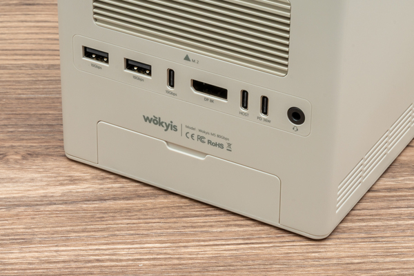 「Wokyis M5」は、下部のプラスチックカバーを外すことで、Mac miniをスッポリと収められる。