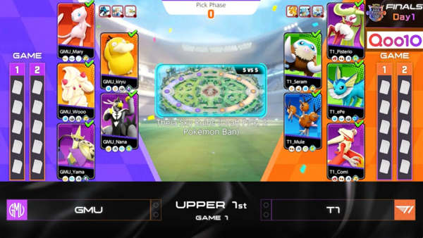 そして、オープン大会から勝ち上がってきたGMUも魅せてくれました。相手は韓国の強豪チームのT1。大一番で緊張も出てしまうのかと思いきや、とても落ち着いたプレイングで、相手が仕掛けてきたところを冷静に対処し、集団戦も見事に立ち回ることで相手との差を広げ、なんとT1に2-0で勝利しました。