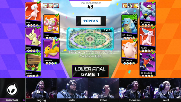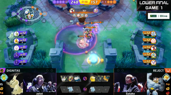 LOWER FINALのDignitas vs REJECTは、初戦で負けたREJECTのリベンジマッチとなりました。初戦から、ゴーリキー・カイリキーの地獄車を起点に集団戦を仕掛けますが、一進一退の攻防が続きます。しかし、グラードン戦前にうまく孤立した相手からカイリキーが仕掛けて倒していき、グラードンも確保。Dignitasも最後まで仕掛けますが、REJECTが完封し、初戦はREJECTが勝利しました。