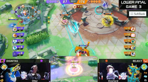 大きくリードしたかに思えましたが、Dignitasもしっかりと経験値を稼ぎ、経験値の差もどんどん縮めていきます。Overlord選手のダダリンのフックを起点としていたREJECTですが、グラードン前ではダダリンがまず倒されてしまいます。しかし、そこからの修正が素晴らしく、グラードンはREJECTが獲得します。