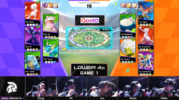 そして、3試合目。途中までは一進一退の攻防が続き、この試合でも途中までRival Esportsが若干押しているように感じました。しかし、グラードン前の集団戦でSZ_Kapio選手のネギガナイトが相手3人を撃破し、圧倒的な差を手にします。そのまま3戦目を制し、LOWER FINALへと駒を進めました。