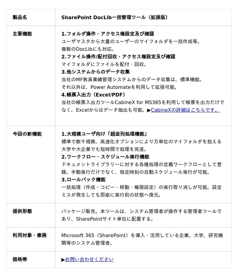 ▶『SharePoint DocLib一括管理ツール』の製品詳細を見る