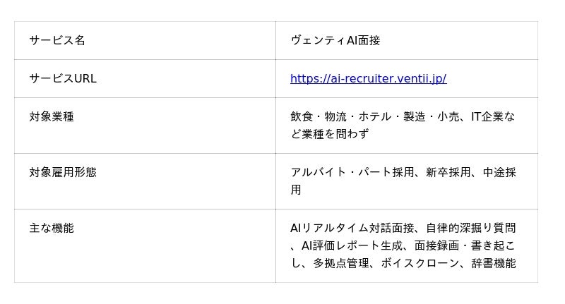 ヴェンティ株式会社(本社:東京都渋谷区、代表取締役CEO:平塚登馬、以下「ヴェンティ」)は、B2B AI面接サービスの「ヴェンティAI面接」を本日正式リリースいたしました。