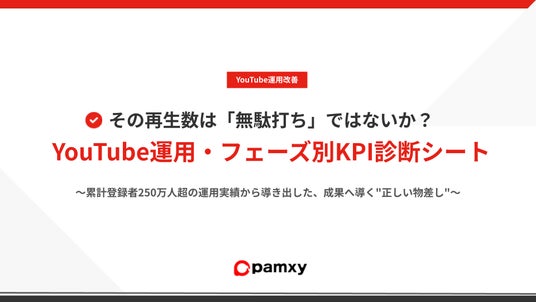SNSマーケティング支援事業を展開する株式会社pamxy(本社:東京都港区、代表取締役:西江 健司)は、企業のYouTube運用における投資対効果(ROI)を最大化するため、独自の診断資料『YouTubeフェーズ別・KPI診断シート(PDF版)』本日公開いたしました。