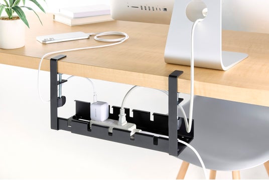 机の上も足元もすっきり。ケーブル配線をまとめられる伸縮タイプのケーブルトレーです。ごちゃつきがちなケーブルやタップをデスク下に収納でき、作業スペースが広がって見た目もスマートに。テーブルの上に設置すれば、デスクトレーとして小物整理にも役立ちます。