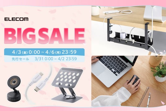 エレコム株式会社(本社:大阪市中央区、取締役社長執行役員:石見 浩一)は、Amazonで2026年4月3日(金)0:00から4月6日(月)23:59にかけて開催される「Amazon 新生活セールFinal」において、エレコムの人気製品を特別価格で販売いたします。