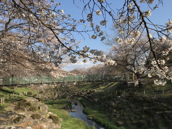 縄文時代の住居跡などが発見された国指定の史跡「矢瀬遺跡」や子どもたちが遊べる遊具もそろった「月夜野矢瀬親水公園」。バーベキュー場もある園内では、例年4月中旬になると、利根川沿いなどに咲く約50本のソメイヨシノが見頃を迎え、地元民らを中心にお花見を楽しむ人でにぎわいます。夏には水遊びが楽しめる小川がある園内には、吊り橋や水車小屋などが点在。絵になる光景は、満開の桜とともに写真に収めたくなるはずです。4月3日(金)~19日(日)まで行われている桜のライトアップ期間中は、大勢の花見客でにぎわう昼とは雰囲気が一変。川のせせらぎだけが聞こえる夜の静けさのなか、池に映し出された桜などをロマンチックに観賞できます。公園の隣には、車中泊にも便利な広い駐車場を完備した道の駅が隣接。新鮮な地場野菜や名物の「つきよの納豆」などを販売する農産物直売所があるほか、地元の食材を使ったうどんなどを味わえる食事処も人気です。