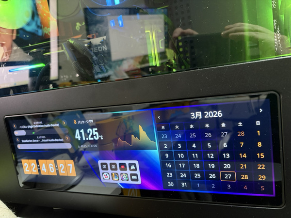 2025年のPCパーツ市場は、結構LCDディスプレーが増えたなという印象で、2026年も増えるのかといったところに個人的に注目しています。昨年でいうと、CPUクーラーのLCDディスプレーが大型化しただけでなく、マザーボード横やPCケースに組み込むといったディスプレーが増えてきました。その中でも代表格で話題になったのが、CORSAIRの「XENEON EDGE」ではないでしょうか。