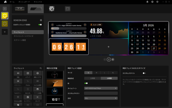 XENEON EDGEに表示する項目は、iCUE上でページを増やすことができて、かつ切り替えが可能なので、複数作っておいて気分で変えるということも可能です。