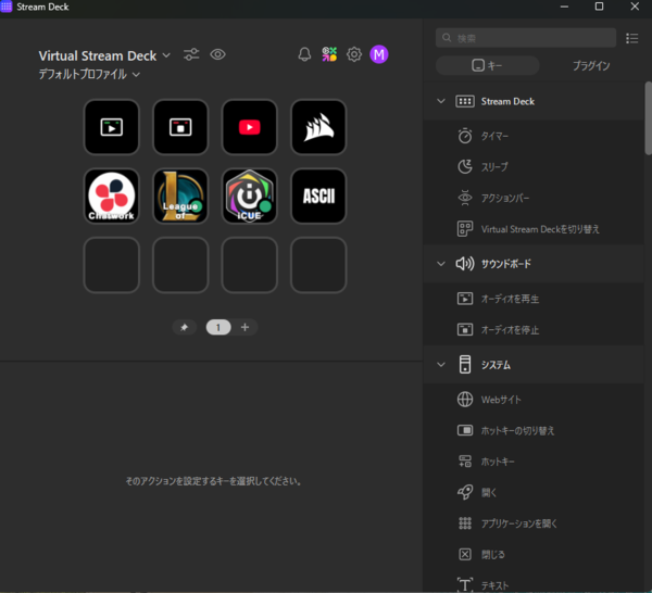 XENEON EDGEに表示する内容は、サブディスプレーとしてだけでなく、iCUEで設定できます。例えば、CPUやGPU負荷といったPCのシステム情報のほか、時計やカレンダー、天気などの表示が可能です。加えて、バーチャルキーボードを使ったり、Virtual Stream Deckを表示して使用したりと、タッチ機能を使った操作も便利です。