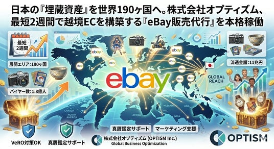 デジタルマーケティング事業および越境EC事業を展開する株式会社オプティズム(本社:東京都文京区、代表取締役:大木 勇)は、世界最大級のマーケットプレイス「eBay(イーベイ)」を活用し、日本企業の海外販売を一気通貫でサポートする『eBay販売支援サービス』を本格的に開始いたしました。