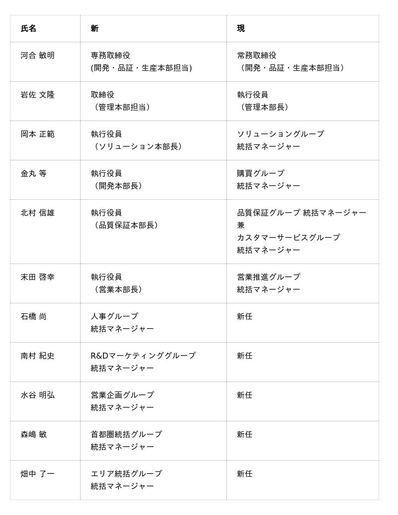 タイガー魔法瓶株式会社(社長:菊池嘉聡、本社:大阪府門真市)は、4月21日付人事異動を以下のとおり決定しましたのでお知らせいたします。