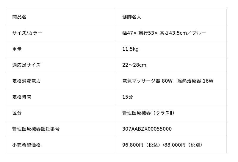 フットマッサージ器「健脚名人」の商品概要