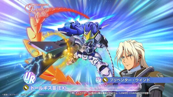 登場するのはUR「ウイングガンダムゼロ(EW版)(EX)」、UR「ダブルオーライザー(最終決戦仕様)(EX)」、UR「トールギスⅢ(EX)」の3機。注目を集めているのが機体のタイプで、ウイングガンダムゼロが攻撃型、ダブルオーライザーが耐久型、トールギスⅢが支援型となっている。