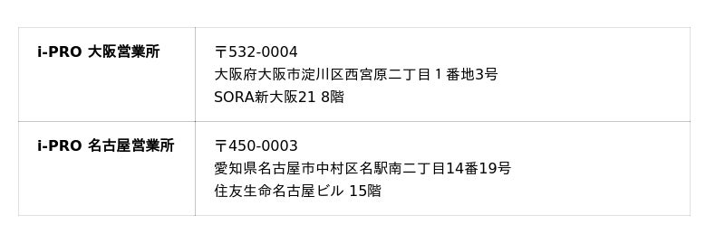 i-PRO株式会社(本社:東京都港区、代表取締役社長 兼 Chief Executive Officer 中尾 真人、以下i-PRO)は、本日、昨年10月23日に発表したパナソニック コネクト株式会社(本社:東京都中央区、代表取締役 執行役員 プレジデント・CEO:樋口泰行、以下パナソニック コネクト)の現場ソリューションカンパニーにおけるi-PRO製品の国内販売店向け販売・マーケティング機能を承継し、統合が完了したことをお知らせいたします。また、国内販売体制の強化のため大阪と名古屋へ営業所を開設しました。