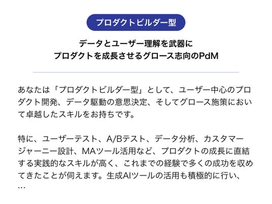 ・診断タイプ結果:プロダクトビルダー型 / グロースハッカー型 / ビジネスオプティマイザー型