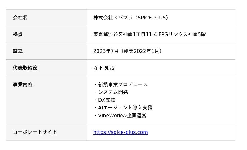 「開発を、本来あるべき姿に」をミッションに、システム開発における古い慣習や非効率なプロセスを再定義し、すべての開発プロジェクトが本来の価値を発揮できる世の中を目指すテックカンパニーです。より良い開発体験の普及に加え、AIエージェントが業務システムに組み込まれた新しい働き方を実現する「VibeWork」の開発・提供を通じて、人間とAIが共に創る社会を推進しています。