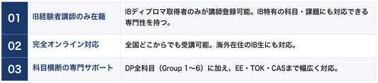 IBアカデミーは、IB(国際バカロレア)ディプロマを取得した経験者のみが講師として登録できるという厳格 な基準を設けています。IBのカリキュラムは一般的な学校教育と大きく異なり、課題論文(EE)・知の理論( TOK)・創造性・活動・奉仕(CAS)といった独自科目への対応には、実際にIBを経験した講師が不可欠です 。