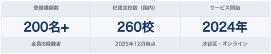 株式会社Linksenpai(所在地:東京都渋谷区、代表取締役:吉田志織)が運営するIB(国際バカロレア)専門 オンライン家庭教師サービス「IBアカデミー」は、2026年3月、登録講師数が200名を突破したことをお知ら せします。 日本国内のIB認定校・候補校数は2025年12月時点で260校(文部科学省IB教育推進コンソーシアム調べ)に 達し、IB生の数は年々増加しています。一方で、IBの高度な学習要求に応えられる専門家庭教師は慢性的に不 足しており、IBアカデミーはこの課題に応えるべく講師ネットワークの拡充を続けてきました。