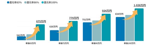 本制度では、入社時の還元率83%をベースとし、入社4年目で86%、入社10年目には“100%”に達する仕組みを採用。昨今のフリーランス志向の高まりを受け、正社員としての安定とフリーランス以上の高還元を両立できる新しい働き方を提案します。