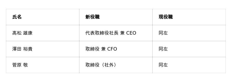 代表者:代表取締役社長 兼 CEO 高松雄康