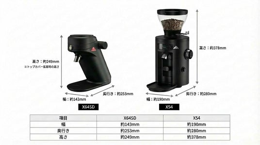 ご家庭での使用を想定し、キッチンやコーヒーコーナーにも収まるサイズ感。マールクーニックが現在販売している家庭用コーヒーグラインダー「X54」よりもさらにコンパクトで、スペパも抜群です。