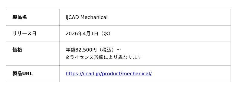 システムメトリックス株式会社(本社:名古屋市中区、代表取締役:永岡 孝一)は、2026年4月1日(水)から機械設計用2D CADの最新版「IJCAD Mechanical 2026 SP0」の提供を開始いたしました。