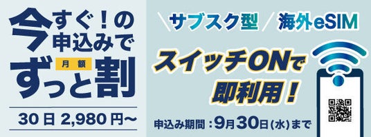 2026年9月30日(水)までにご契約いただいたお客様を対象に、解約までずっと継続する特別価格を適用いたします 。