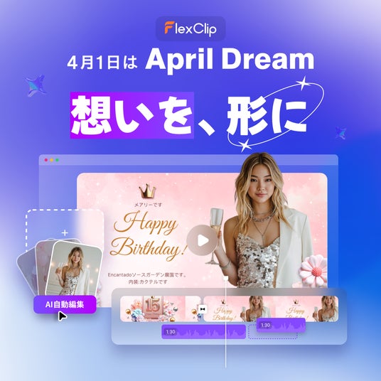 4月1日、FlexClipはPR TIMESの「April Dream」プロジェクトに合わせ、同社が技術で切り拓く創作の未来を宣言します。FlexClipが描く夢は、「ビデオ編集におけるあらゆる技術的制約をゼロにし、個人のアイデアや企業の志が、瞬時に世界を動かす映像資産へと変わるインフラを構築すること」です。